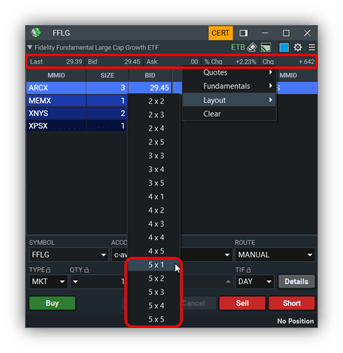 The Order Ticket now allows up to five columns and up to five rows to appear in the quote table.